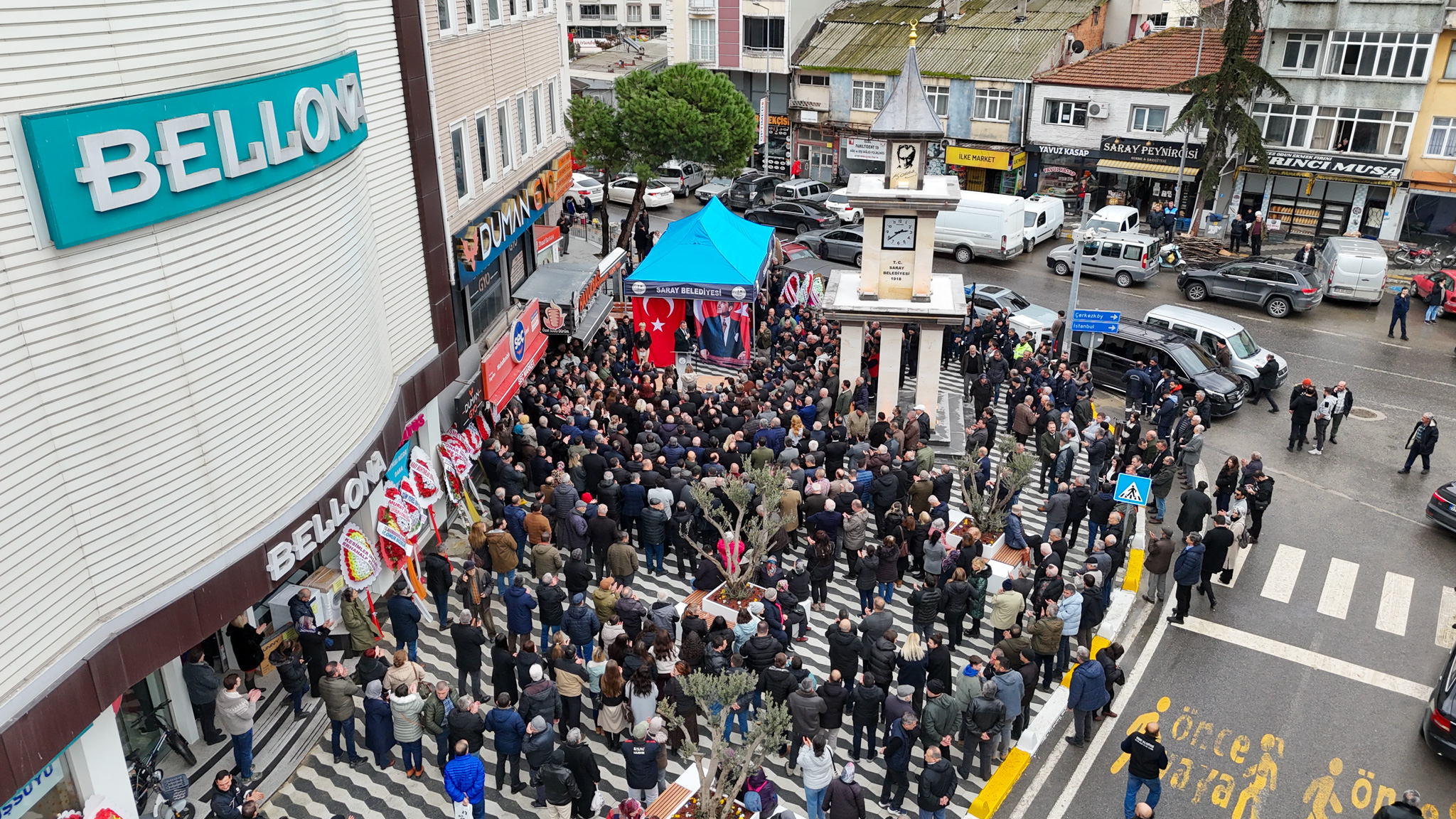 Saray Belediyesi tarafından yapımı tamamlanan Saat Kulesi, Cuma günü düzenlenen törenle hizmete açıldı. Açılışa TBMM Divan Katip Üyesi CHP Tekirdağ Milletvekili Nurten Yontar, CHP Tekirdağ Milletvekili Dr. İlhami Özcan Aygun, Tekirdağ Büyükşehir Belediyesi Başkan Vekili Hasan Toprak, CHP Tekirdağ İl Başkanı Cenk Boduç, Çerkezköy Belediye Başkanı Vahap Akay, Muratlı Belediye Başkanı Varol Türel, Silivri Belediye Başkanı Bora Balcıoğlu, Çakıllı Belediye Başkanı Mehmet Bayram, Çerkezköy Ticaret ve Sanayi Odası Başkanı Ahmet Çetin, CHP Saray İlçe Başkanı Erol Gürler ve Yönetimi, siyasi parti ve STK temsilcileri, belediye meclis üyeleri, muhtarlar ve vatandaşlar katıldı.