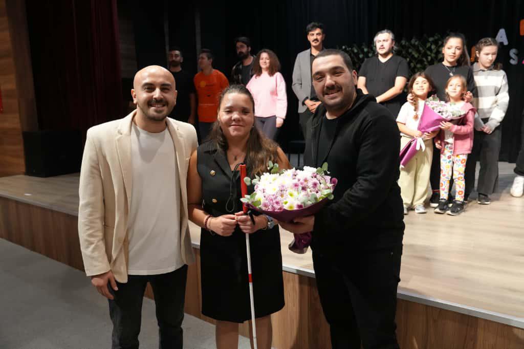 Oyun sonunda sahneye gelen Saray Belediyesi Kültür ve Sosyal İşler Müdürü Kaan Özen, “Birlikte fark ettik, birlikte hissettik. Engelleri birlikte aşacağımız herkes için erişilebilir bir dünya mümkün. Empati kuralım, farkında olalım. Engel değil, destek olalım” dedi.