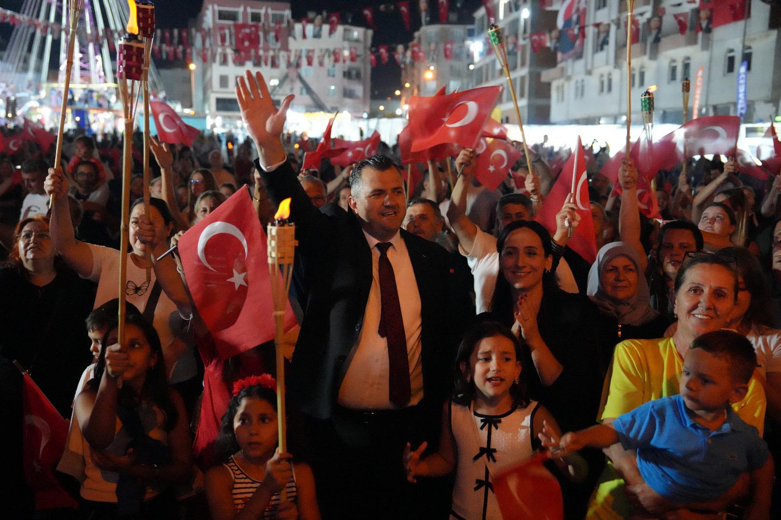 “Bayrağını yüreğinde taşıyan, alkışında vatan sevgisi, bakışında umut olan, çocuğuyla, genciyle, yaşlısıyla bu meydanı dolduran güzel insanlar... Biz bu şehrin kalbiyiz, umuduyuz, dünü, bugünü ve yarınlarıyız...