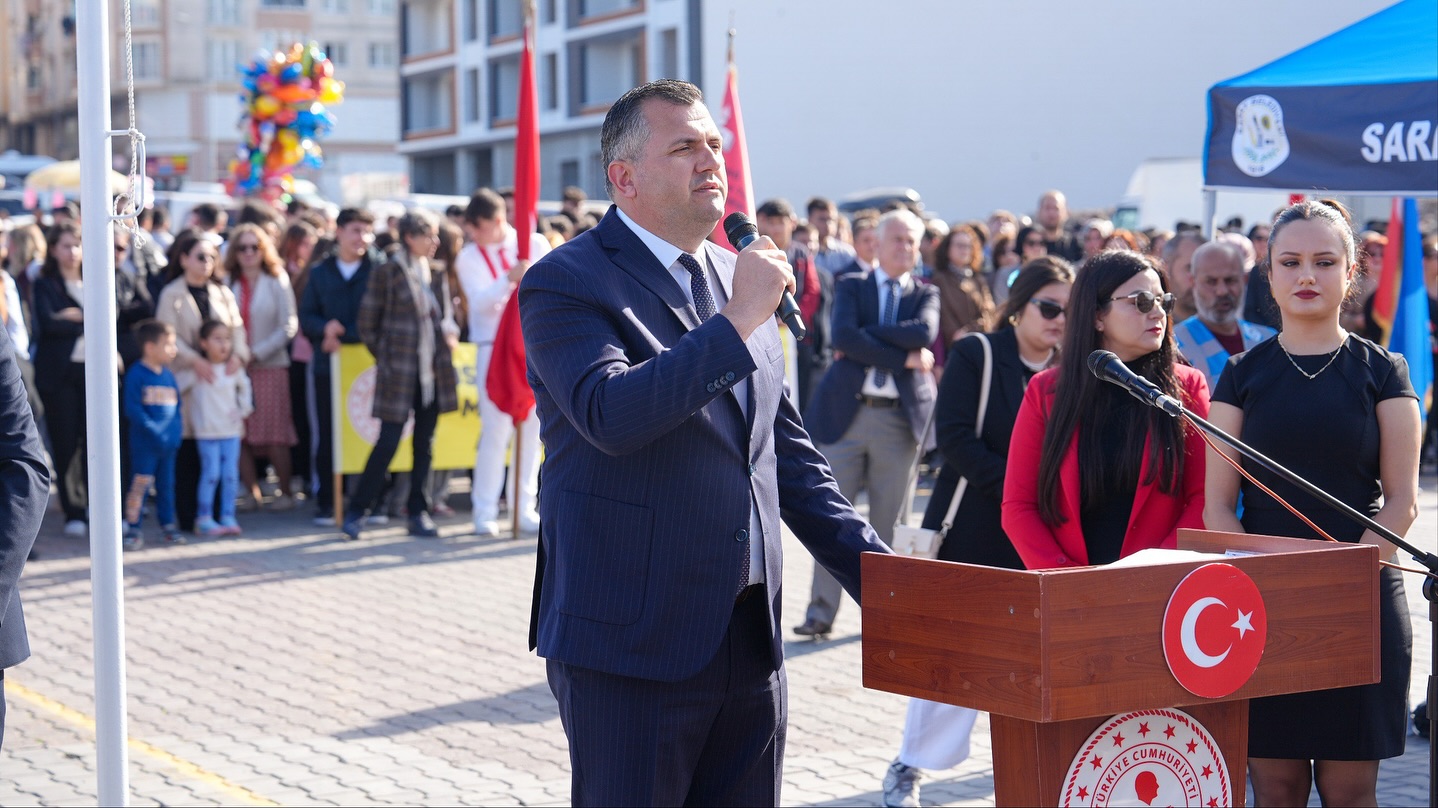 “Bugün, Saray’ın yeniden doğduğu, bağımsızlığın ışığının bu topraklarda sonsuza dek yandığı gündür. Bugün, 1 Kasım’dır. 103 yıl önce, bu bereketli topraklarda boyun eğmeyen, diz çökmeyen, inançla direnen bir halk vardı. Saray halkı, Atatürk’ün önderliğinde, “Ya istiklal ya ölüm!” diyerek ayağa kalktı. 'Vatanın bölünmez bütünlüğü söz konusuysa, gerisi teferruattır!' dedi. Ve kadınıyla, erkeğiyle, genciyle, yaşlısıyla tek yürek oldu. Bu kararlılıkla Saray, işgalden zafere, zaferden Cumhuriyet'e yürüdü. Ama o zaferin bedeli ağırdı… Saray’ın kalbinde, Büyükyoncalı’nın acısı hâlâ yankılanır. İşgalin karanlık günlerinde, Saray’dan ve Büyükyoncalı’dan tam 310 yiğidimiz tren vagonlarına dolduruldu, Ege’nin ötesindeki Milos Adası’na esir olarak götürüldü. O yol, açlığın, soğuğun, işkencenin yoluydu. Ve o 310 candan yalnızca 158’i evine dönebildi. 152’si, bir daha geri dönemedi… Biz bugün o acıyı unutmamak, o kahramanları unutmamak için buradayız. Çünkü o 152 Saraylının her biri, bu topraklara özgürlüğü, onuru, vatan sevgisini kazıdı. Saray’ın rüzgârında hâlâ onların nefesi vardır. Toprağımızda onların alın teri, gözyaşı, duası vardır. Ve biz biliyoruz ki; bu vatan bize sadece miras değil, emanettir! Biz, o emaneti onurla taşıyan bir halkız. Biz, Saraylıyız! Ve biz, Atatürk’ün Cumhuriyeti’ne gönülden bağlıyız! Bugün, 103 yıl önceki o inancı yeniden hatırlıyoruz. O inanç diyor ki: “Birlik olursak, hiçbir güç bu milleti yıkamaz!” Ve biz, o birlikten, o inançtan güç alıyoruz. Çünkü biz, Saray’ız! Direnişin, cesaretin, onurun adıyız! Bu duygu ve düşüncelerle; başta Gazi Mustafa Kemal Atatürk ve silah arkadaşları olmak üzere, vatan uğruna can veren tüm şehitlerimizi rahmet, minnet ve saygıyla anıyorum. Saray’ımızın düşman işgalinden kurtuluşunun 103. yılı kutlu olsun! Yaşasın Saray! Yaşasın bağımsızlık! Yaşasın Cumhuriyet!"