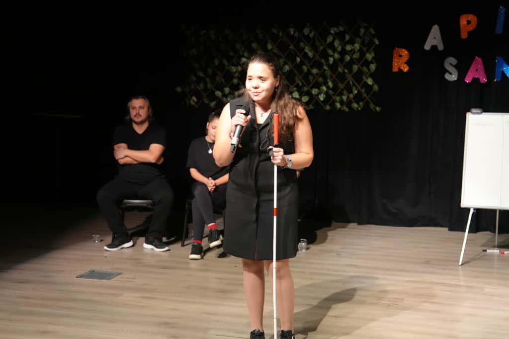 Oyun sonunda sahneye gelen Saray Belediyesi Kültür ve Sosyal İşler Müdürü Kaan Özen, “Birlikte fark ettik, birlikte hissettik. Engelleri birlikte aşacağımız herkes için erişilebilir bir dünya mümkün. Empati kuralım, farkında olalım. Engel değil, destek olalım” dedi.