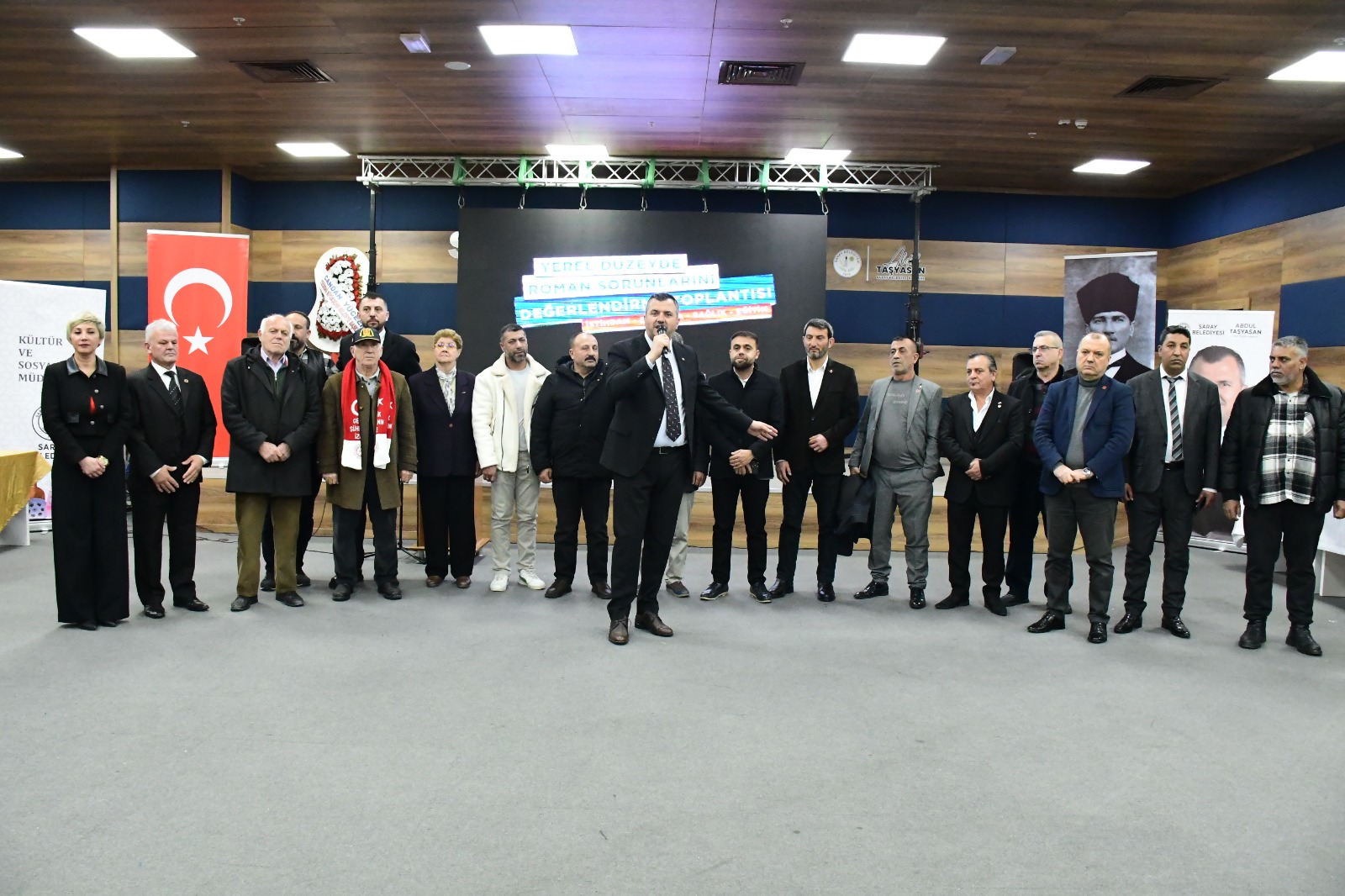 Renkleri, neşeleri ve kültürleriyle Dünyadaki en özgün toplumlardan biri olan Roman vatandaşlarımızın sorunlarını konuşmak için bir aradayız. İlçemizde yaşayan Roman hemşehrilerimizin yaşadığı sıkıntıları masaya yatıracağız. Bugün Roman kardeşlerim konuşacak, problemlerini anlatacak. Onların sorunlarını çözüme kavuşturmak için yol haritamızı belirleyeceğiz.